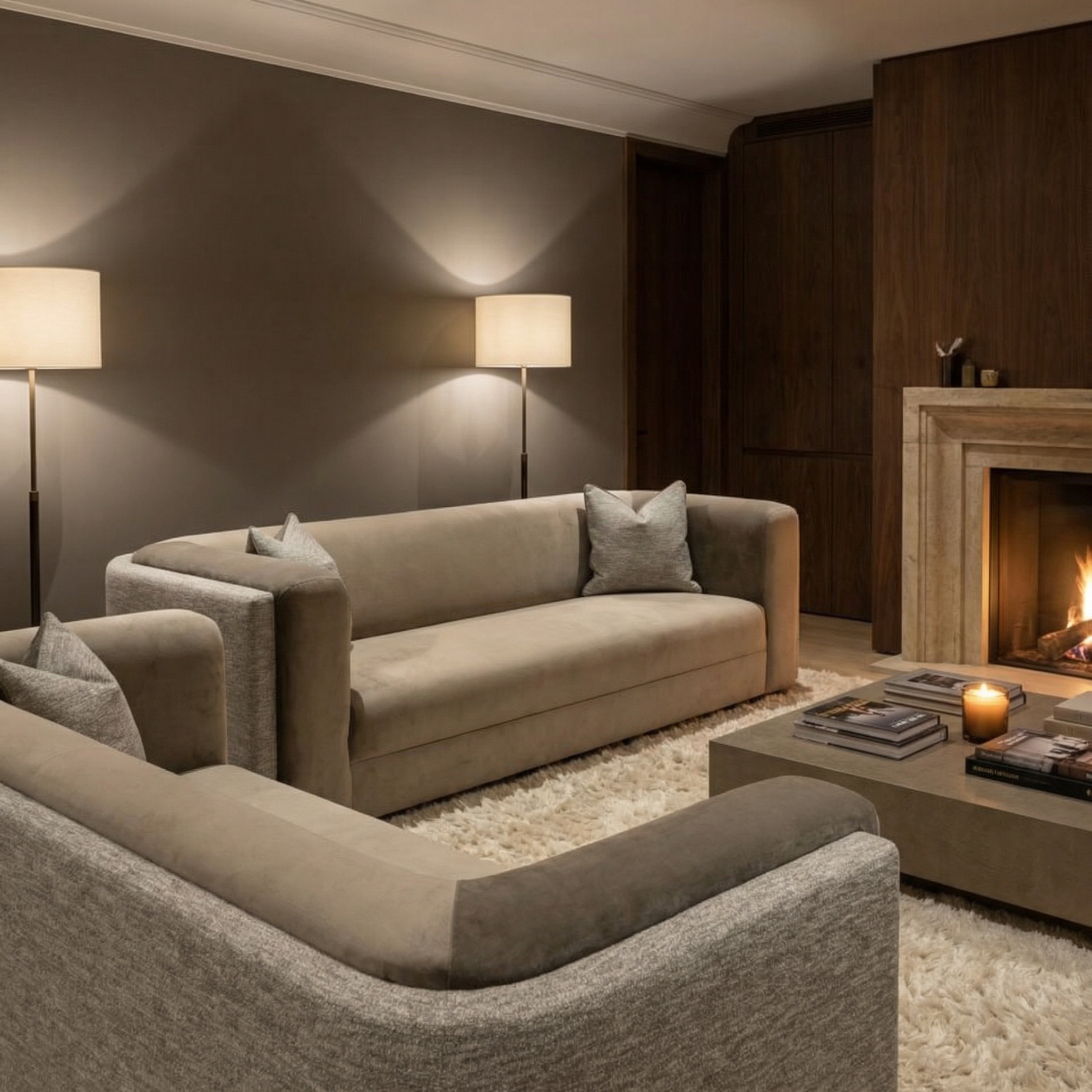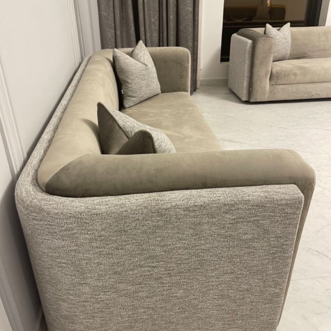 • Description : canapé double dossier double tissus : velours et toile